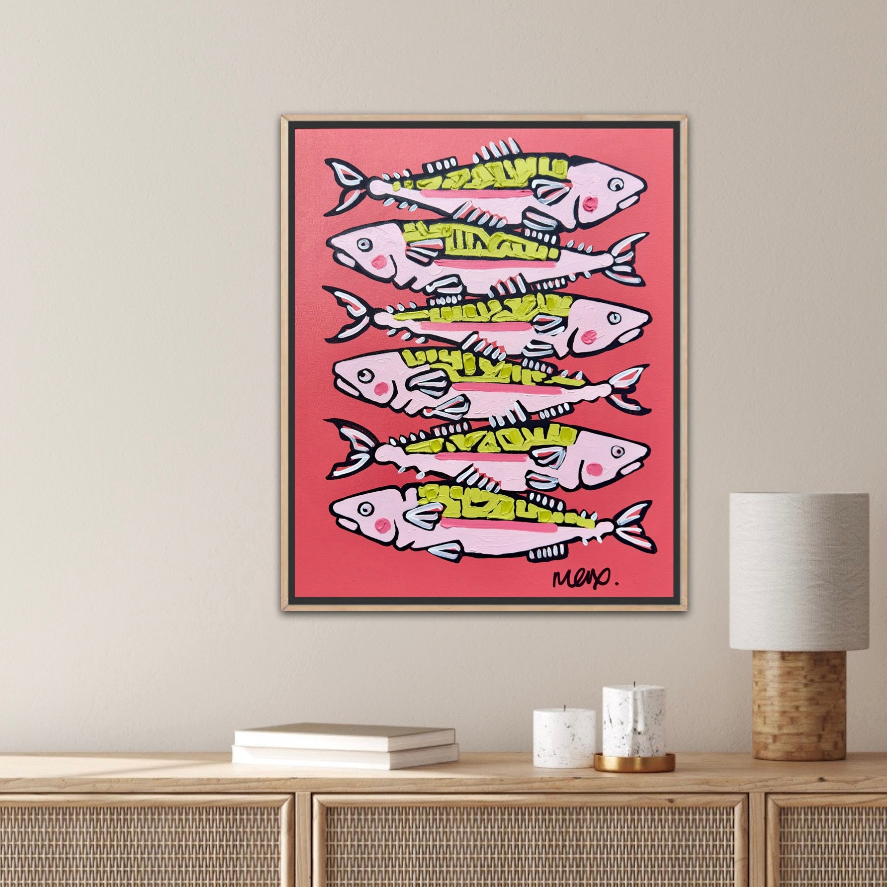 This artwork has painted sides and shipped complete with oak frame.
